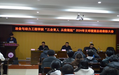 为表彰先进,树立典型,进一步推进文明寝室建设,营造良好的学习和生活环境,近日,冶金与动力工程学院在砺志楼L215会议室召开“三全育人 从我做起”2024年文明寝室总结表彰暨2025年文明寝室创建动员大会。学工部副部长王力,学院党总支书记高逸锋、全体专职辅导员、文明寝室代表以及2024级本科生寝室长参加了此次会议。会议由学院党总支副书记伍静主持。
