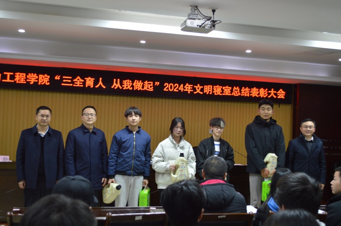 学院党总支书记高逸锋首先宣读了学院关于表彰2024年度文明寝室的决定,对过去一年在寝室卫生、文化建设、学风建设等方面表现突出的寝室进行了表彰,并号召全体同学以他们为榜样,积极参与文明寝室创建活动,共同营造文明、和谐、积极向上的寝室氛围。