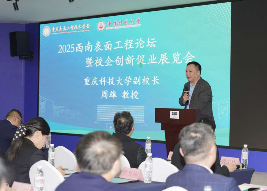 11月1日,由重庆表面工程技术学会主办、我校承办的“2025西南表面工程论坛暨校企创新促业展览会”在重庆大学城智选假日酒店召开。相关群团组织代表、相关高等院校、科研院所专家学者及企业代表共计300余人参加了会议。会议旨在以学术群团组织为纽带,共同探讨表面工程领域前沿技术,加强西南表面工程领域的校企深度合作,促进科技成果转化和人才培养与就业。会议开幕式由冶金与动力工程学院院长戴庆伟主持。