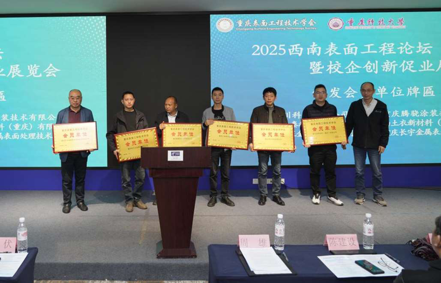 重庆市涂料涂装行业协会秘书长李伏在致辞中充分肯定了重庆表面工程技术学会在推动行业技术进步、促进校企合作方面所作出的积极贡献,并期待协会与学会进一步加强合作,共同促进重庆市表面工程行业的高质量发展。重庆表面工程技术学会秘书长兰伟教授在会上做了年度工作报告,理事长向斌教授为新进会员单位颁发了牌匾。