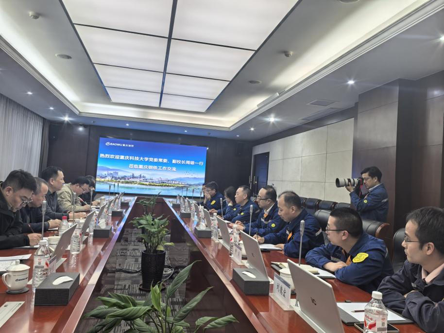 王虎祥对学校一行的到访表示欢迎,他指出重庆钢铁正朝着打造超千万吨高质量绿色智造钢铁企业,成为西南地区钢铁业引领者的目标坚定前行。未来,重庆钢铁将在产品研发、产线升级、环保建设、智慧制造等方面加大投入。他期待与我校通过产学研结合,创新合作机制,进一步拓展合作领域,促进公司快速实现宏伟目标。