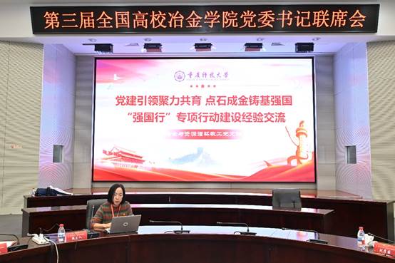 会议围绕“破解党建与业务‘两张皮’难题”核心议题展开,东北大学、中南大学等高校代表先后分享经验。张生芹以“党建引领聚力共育 点石成金铸基强国”为主题,介绍了重科冶金学科立足70余年办学底蕴,将“强国行”建设与冶金发展、社会进步深度融合的实践成果。