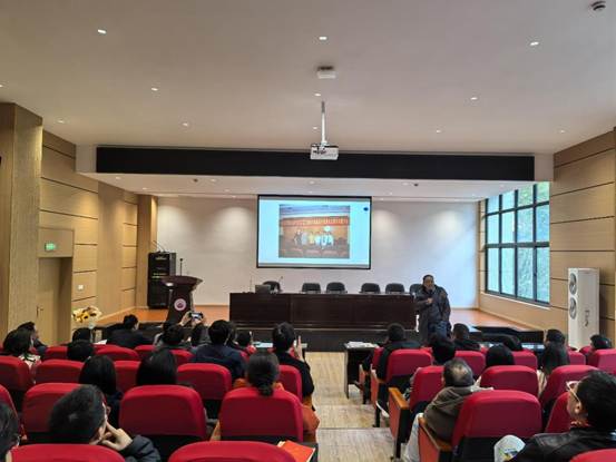 曹鹏军教授深情回顾了36年来在学校教学、科研与人才培养工作中的点点滴滴,分享了自己深耕教育一线的心得体会与职业感悟,更哽咽提及作为恢复高考后考上大学的感恩之情,其真挚感言引发全场共鸣。同时他勉励学院年轻教师踔厉奋发,共同为学院发展再创新绩。