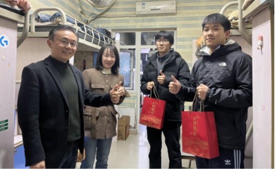 考研冲刺在即,为帮助学子缓解备考压力、坚定升学信心,12月12日,冶金与动力工程学院开展考研学生慰问活动。学院党总支书记高逸锋、副书记洪黎,深入考研学子寝室,为即将踏上考场的学子送上暖心关怀与诚挚祝福。